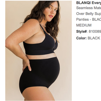 Here are three of my BLANQI pieces. This adorable dress, belly-support leggings, belly-support tank, and cooling bra. I am going to share all of the item numbers below so that you can check them out! I love the material of these products. They stretch to fit the bump, and the undies specifically are beyond comfy to sleep in! They have tons of styles and colors to choose from for all of your maternity needs. Whether you need to dress up for dinner or throw on some workout clothes... this brand is awesome!